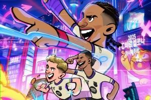 巴萨官方社媒晒出为此役制作的海报,拉菲尼亚、拉什福德和加维的卡通形象出镜。
